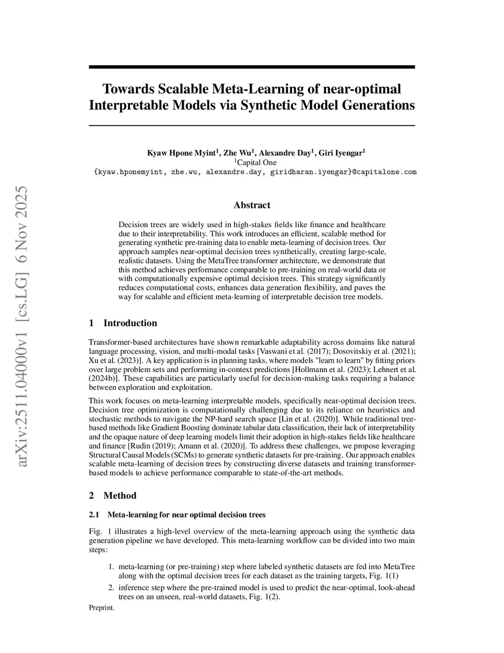 Towards Scalable Meta-Learning of near-optimal Interpretable Models via Synthetic Model Generations