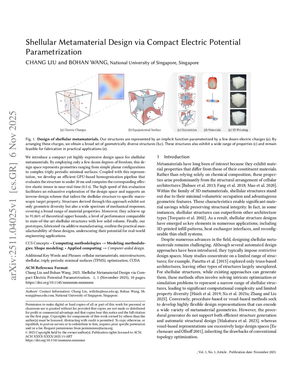 Shellular Metamaterial Design via Compact Electric Potential Parametrization