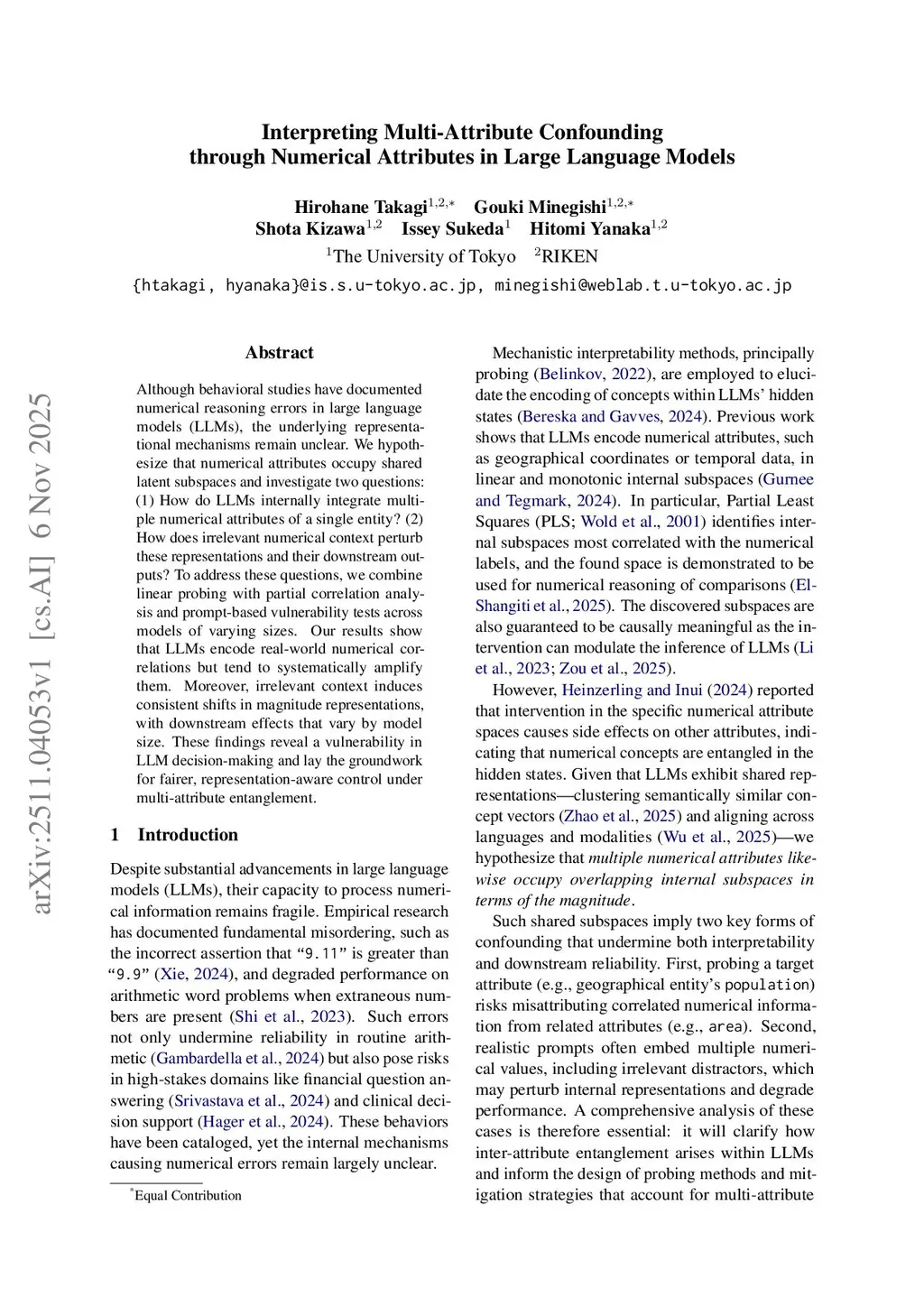 Interpreting Multi-Attribute Confounding through Numerical Attributes in Large Language Models
