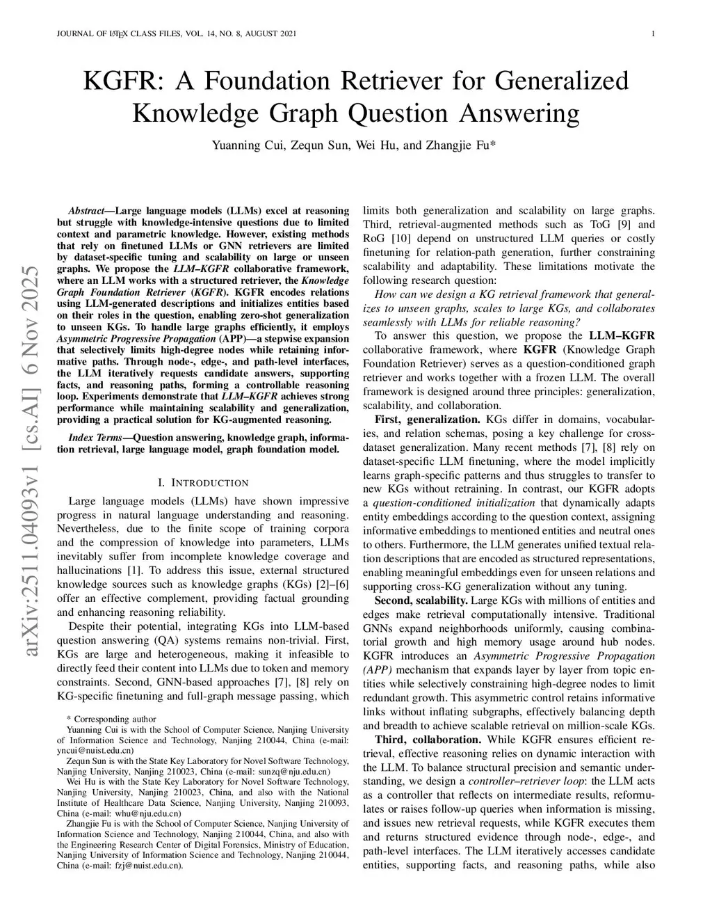 KGFR: A Foundation Retriever for Generalized Knowledge Graph Question Answering