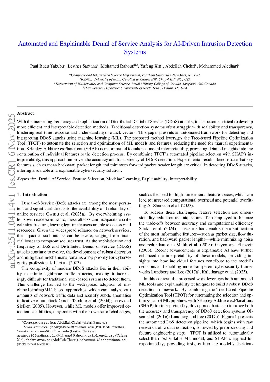 Automated and Explainable Denial of Service Analysis for AI-Driven Intrusion Detection Systems