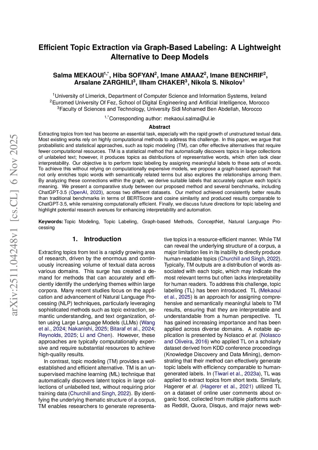 Efficient Topic Extraction via Graph-Based Labeling: A Lightweight Alternative to Deep Models