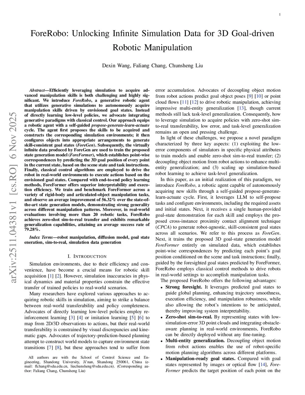 ForeRobo: Unlocking Infinite Simulation Data for 3D Goal-driven Robotic Manipulation