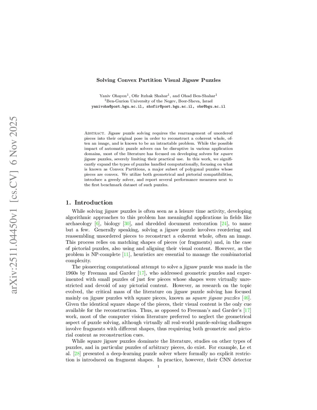 Jigsaw puzzle solving requires the rearrangement of unordered pieces into their original pose in order to reconstruct a coherent whole, often an image, and is known to be an intractable problem. While the possible impact of automatic puzzle solvers can be disruptive in various application domains, most of the literature has focused on developing solvers for square jigsaw puzzles, severely limiting their practical use. In this work, we significantly expand the types of puzzles handled computationally, focusing on what is known as Convex Partitions, a major subset of polygonal puzzles whose pieces are convex. We utilize both geometrical and pictorial compatibilities, introduce a greedy solver, and report several performance measures next to the first benchmark dataset of such puzzles.