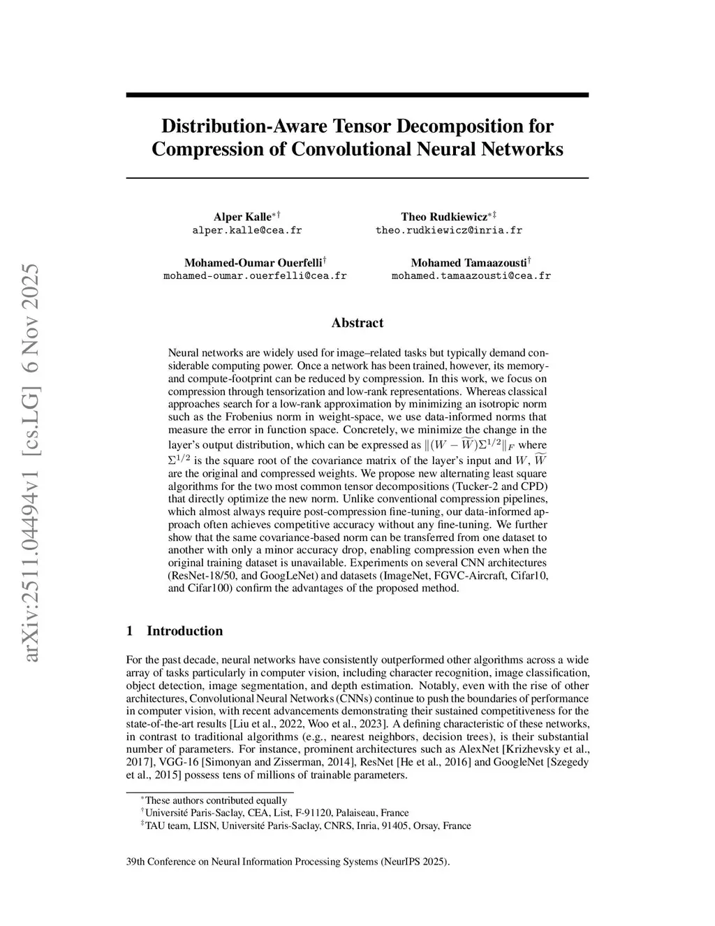 Distribution-Aware Tensor Decomposition for Compression of Convolutional Neural Networks