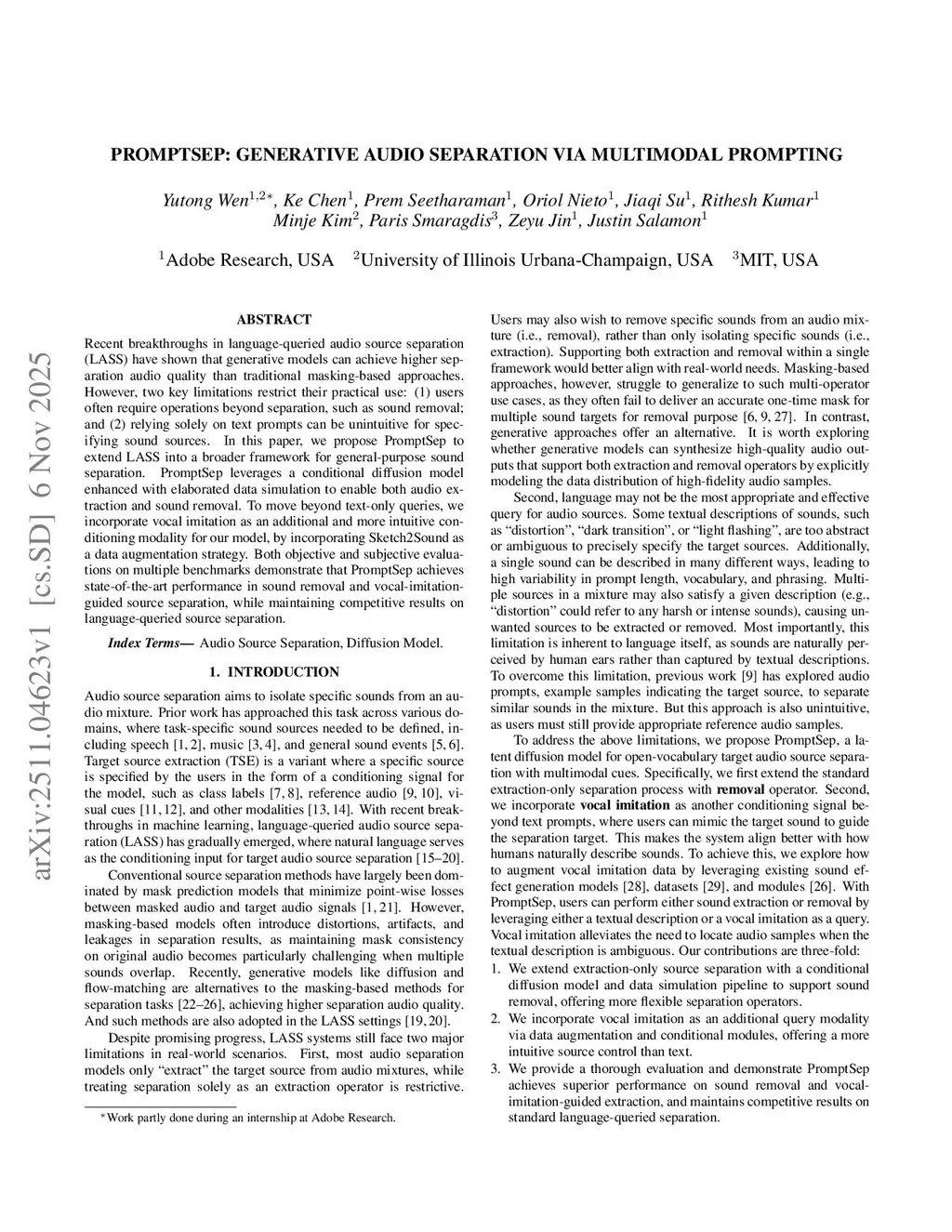 PromptSep: Generative Audio Separation via Multimodal Prompting