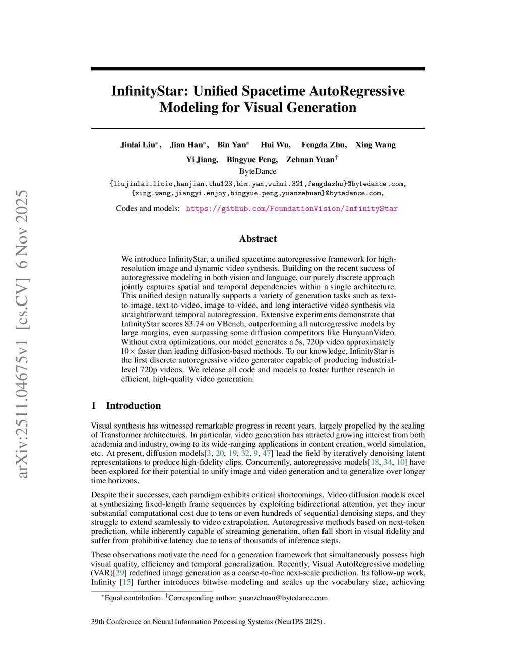 InfinityStar: Unified Spacetime AutoRegressive Modeling for Visual Generation