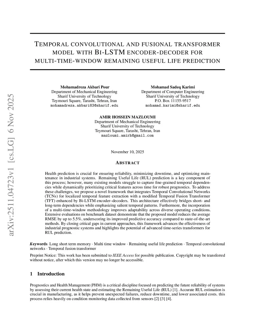 Temporal convolutional and fusional transformer model with Bi-LSTM encoder-decoder for multi-time-window remaining useful life prediction