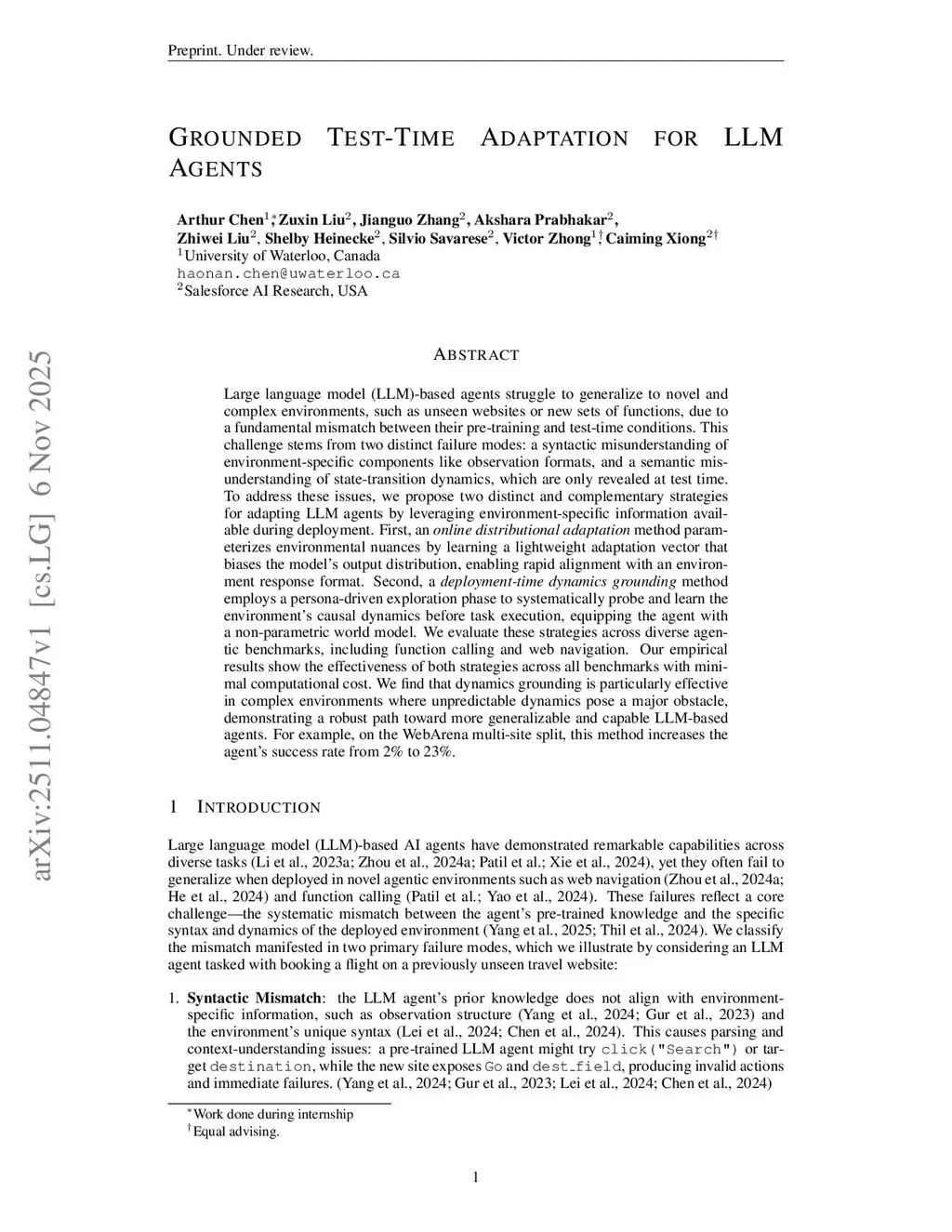 Large language model (LLM)-based agents struggle to generalize to novel and complex environments, such as unseen websites or new sets of functions, due to a fundamental mismatch between their pre-training and test-time conditions. This challenge stems from two distinct failure modes: a syntactic misunderstanding of environment-specific components like observation formats, and a semantic misunderstanding of state-transition dynamics, which are only revealed at test time. To address these issues, we propose two distinct and complementary strategies for adapting LLM agents by leveraging environment-specific information available during deployment. First, an online distributional adaptation method parameterizes environmental nuances by learning a lightweight adaptation vector that biases the model's output distribution, enabling rapid alignment with an environment response format. Second, a deployment-time dynamics grounding method employs a persona-driven exploration phase to systematically probe and learn the environment's causal dynamics before task execution, equipping the agent with a nonparametric world model. We evaluate these strategies across diverse agentic benchmarks, including function calling and web navigation. Our empirical results show the effectiveness of both strategies across all benchmarks with minimal computational cost. We find that dynamics grounding is particularly effective in complex environments where unpredictable dynamics pose a major obstacle, demonstrating a robust path toward more generalizable and capable LLM-based agents. For example, on the WebArena multi-site split, this method increases the agent's success rate from 2% to 23%.