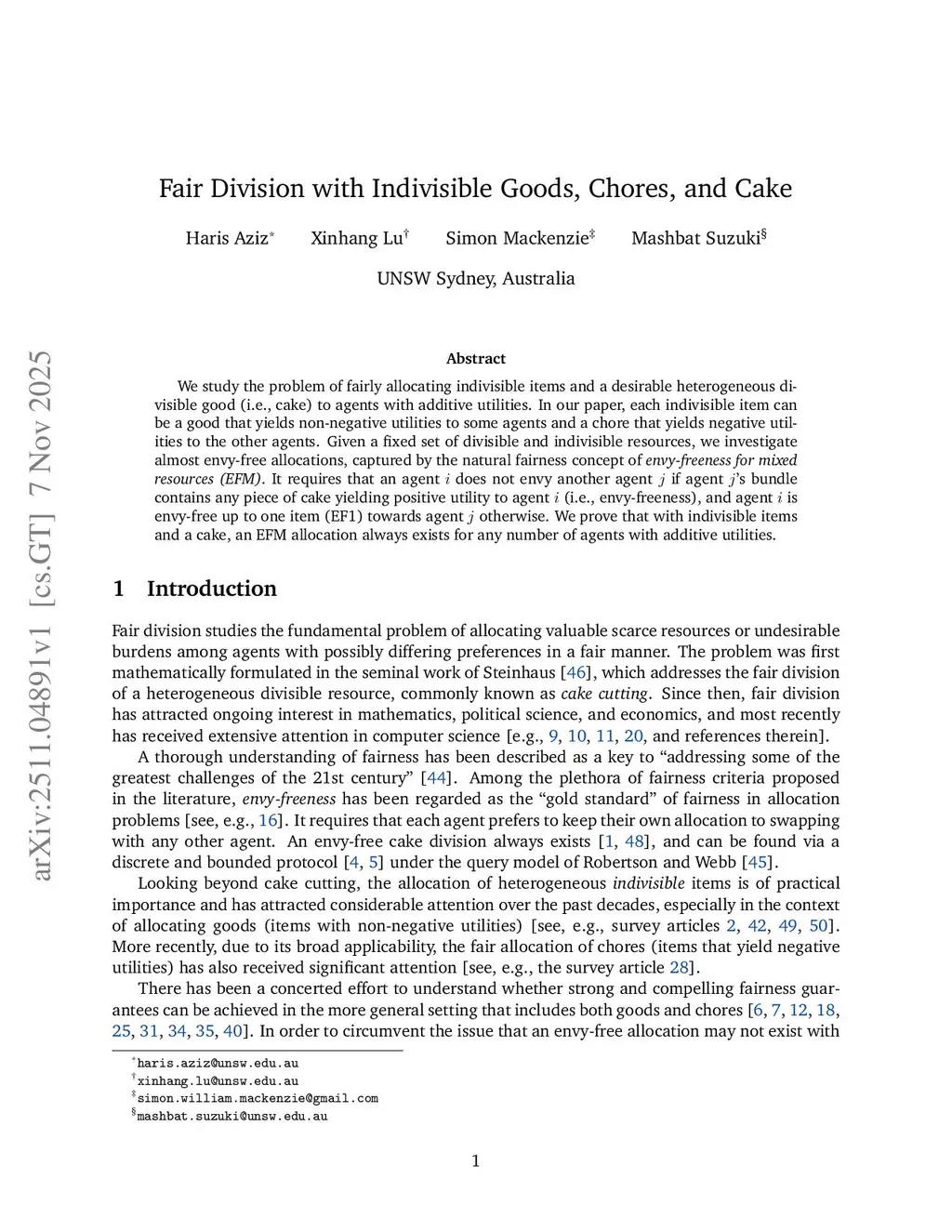 Fair Division with Indivisible Goods, Chores, and Cake