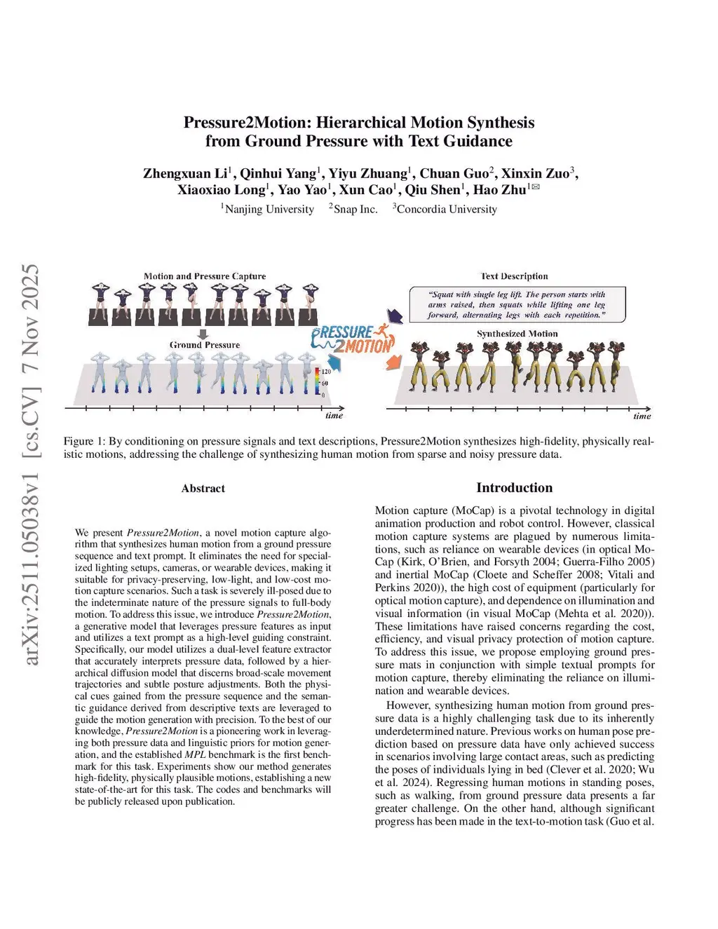 We present Pressure2Motion, a novel motion capture algorithm that reconstructs human motion from a ground pressure sequence and text prompt. At inference time, Pressure2Motion requires only a pressure mat, eliminating the need for specialized lighting setups, cameras, or wearable devices, making it suitable for privacy-preserving, low-light, and low-cost motion capture scenarios. Such a task is severely ill-posed due to the indeterminacy of pressure signals with respect to full-body motion. To address this issue, we introduce Pressure2Motion, a generative model that leverages pressure features as input and utilizes a text prompt as a high-level guiding constraint to resolve ambiguities. Specifically, our model adopts a dual-level feature extractor to accurately interpret pressure data, followed by a hierarchical diffusion model that discerns broad-scale movement trajectories and subtle posture adjustments. Both the physical cues gained from the pressure sequence and the semantic guidance derived from descriptive texts are leveraged to guide the motion estimation with precision. To the best of our knowledge, Pressure2Motion is a pioneering work in leveraging both pressure data and linguistic priors for motion reconstruction, and the established MPL benchmark is the first benchmark for this novel motion capture task. Experiments show that our method generates high-fidelity, physically plausible motions, establishing a new state of the art for this task. The codes and benchmarks will be publicly released upon publication.