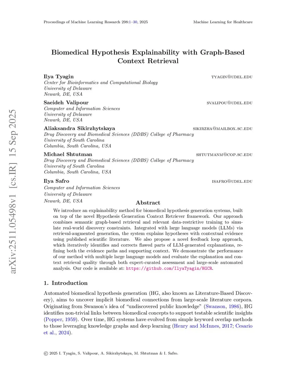 Biomedical Hypothesis Explainability with Graph-Based Context Retrieval