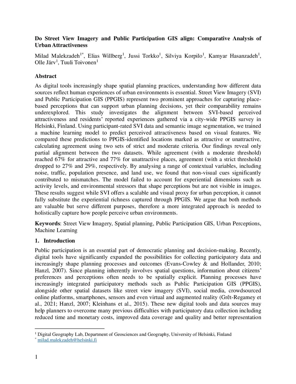 Do Street View Imagery and Public Participation GIS align: Comparative Analysis of Urban Attractiveness