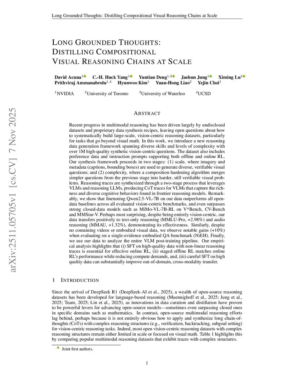 Long Grounded Thoughts: Distilling Compositional Visual Reasoning Chains at Scale