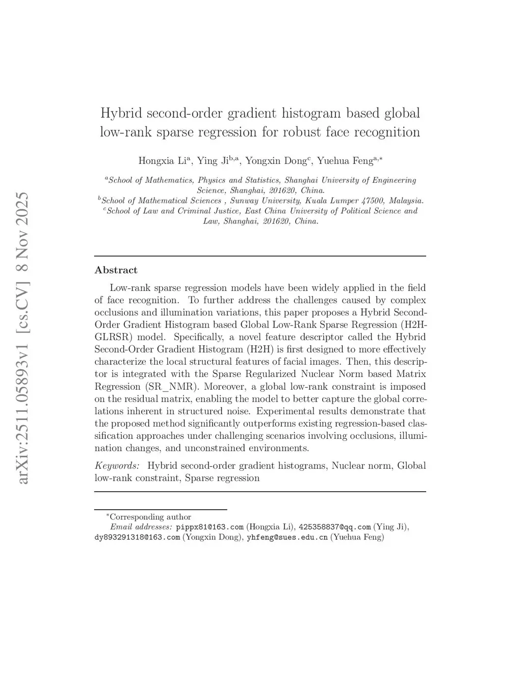 Hybrid second-order gradient histogram based global low-rank sparse regression for robust face recognition