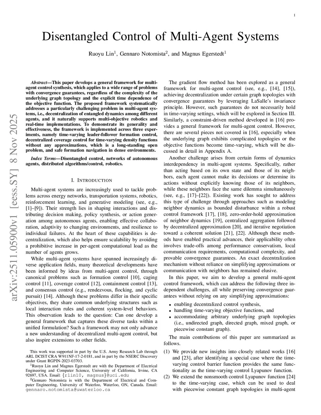 Disentangled Control of Multi-Agent Systems