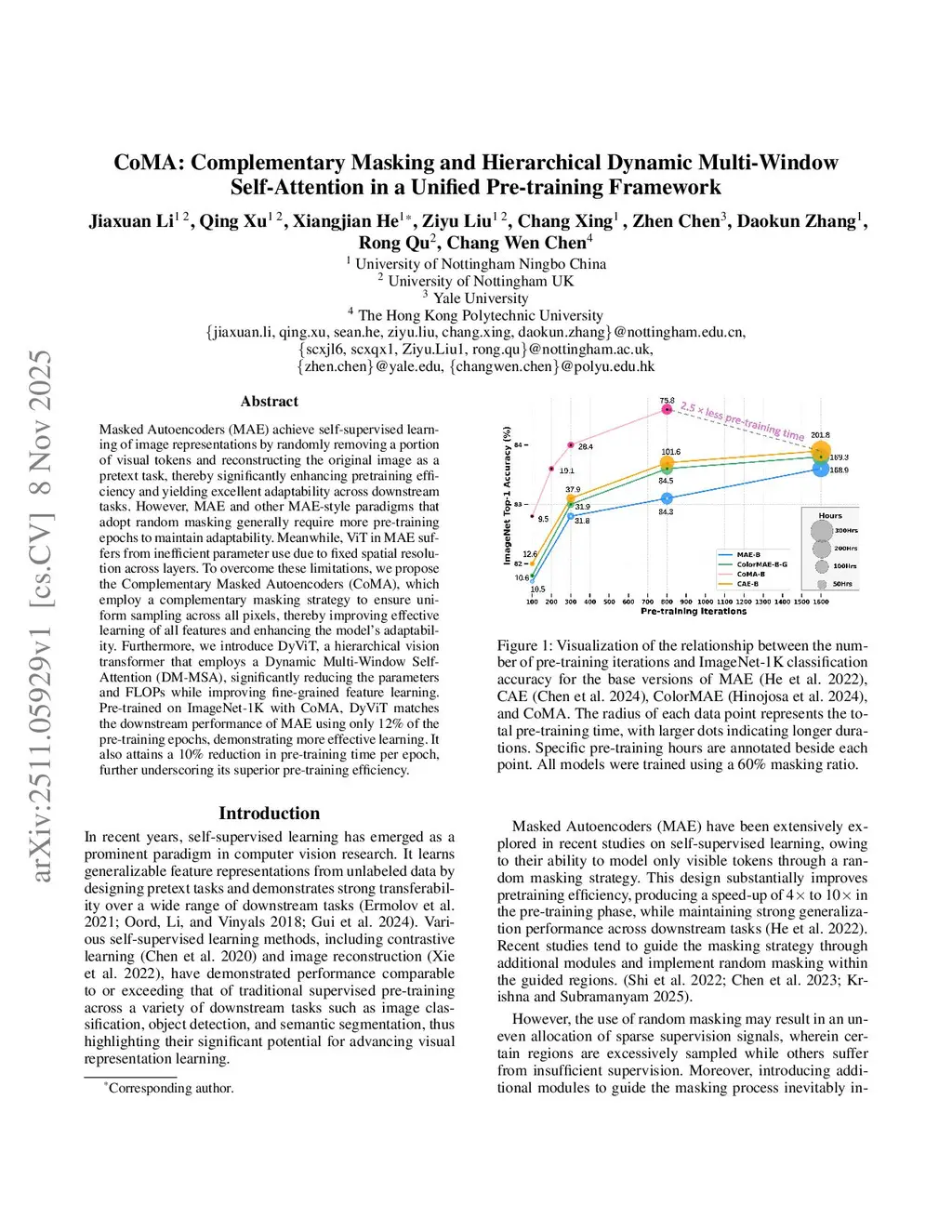 CoMA: Complementary Masking and Hierarchical Dynamic Multi-Window Self-Attention in a Unified Pre-training Framework