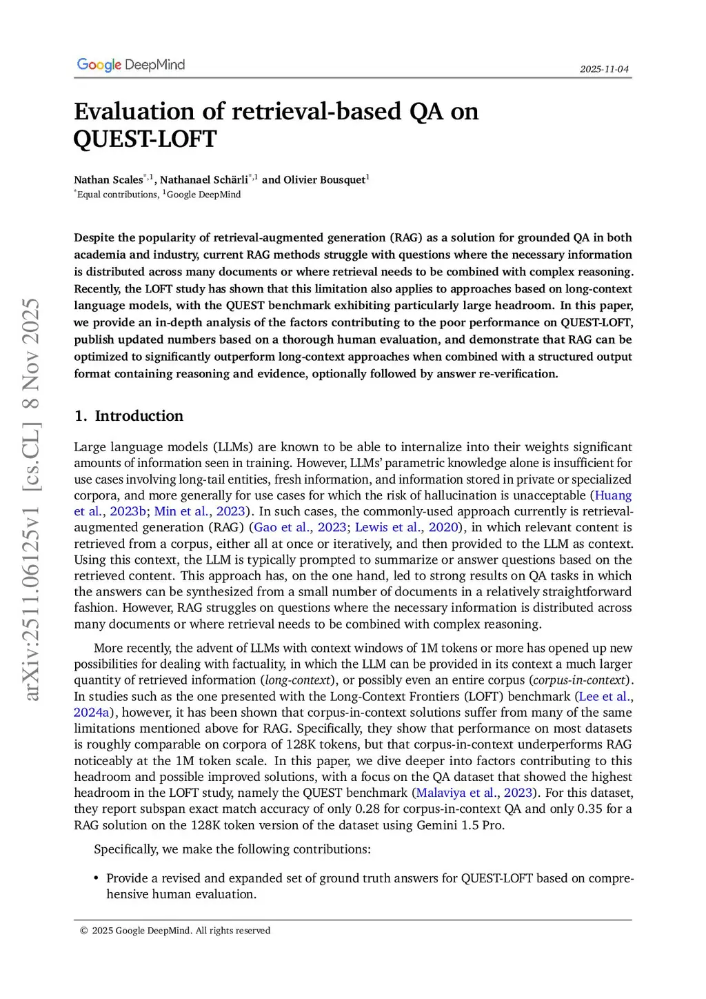 Despite the popularity of retrieval-augmented generation (RAG) as a solution for grounded QA in both academia and industry, current RAG methods struggle with questions where the necessary information is distributed across many documents or where retrieval needs to be combined with complex reasoning. Recently, the LOFT study has shown that this limitation also applies to approaches based on long-context language models, with the QUEST benchmark exhibiting particularly large headroom. In this paper, we provide an in-depth analysis of the factors contributing to the poor performance on QUEST-LOFT, publish updated numbers based on a thorough human evaluation, and demonstrate that RAG can be optimized to significantly outperform long-context approaches when combined with a structured output format containing reasoning and evidence, optionally followed by answer re-verification.