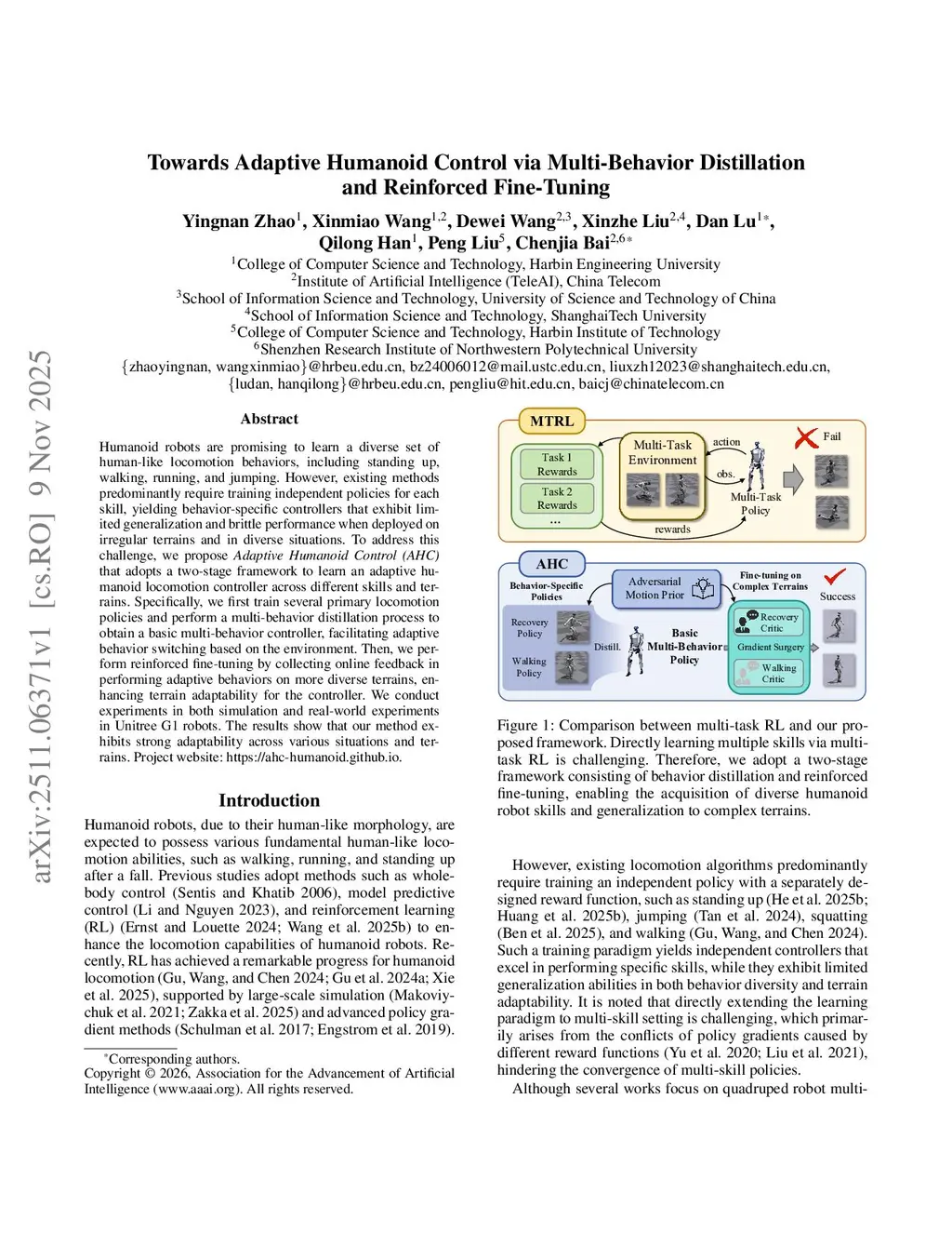 Towards Adaptive Humanoid Control via Multi-Behavior Distillation and Reinforced Fine-Tuning