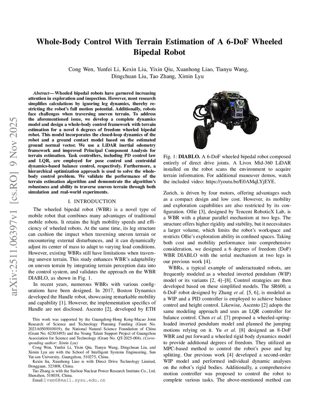 Whole-Body Control With Terrain Estimation of A 6-DoF Wheeled Bipedal Robot