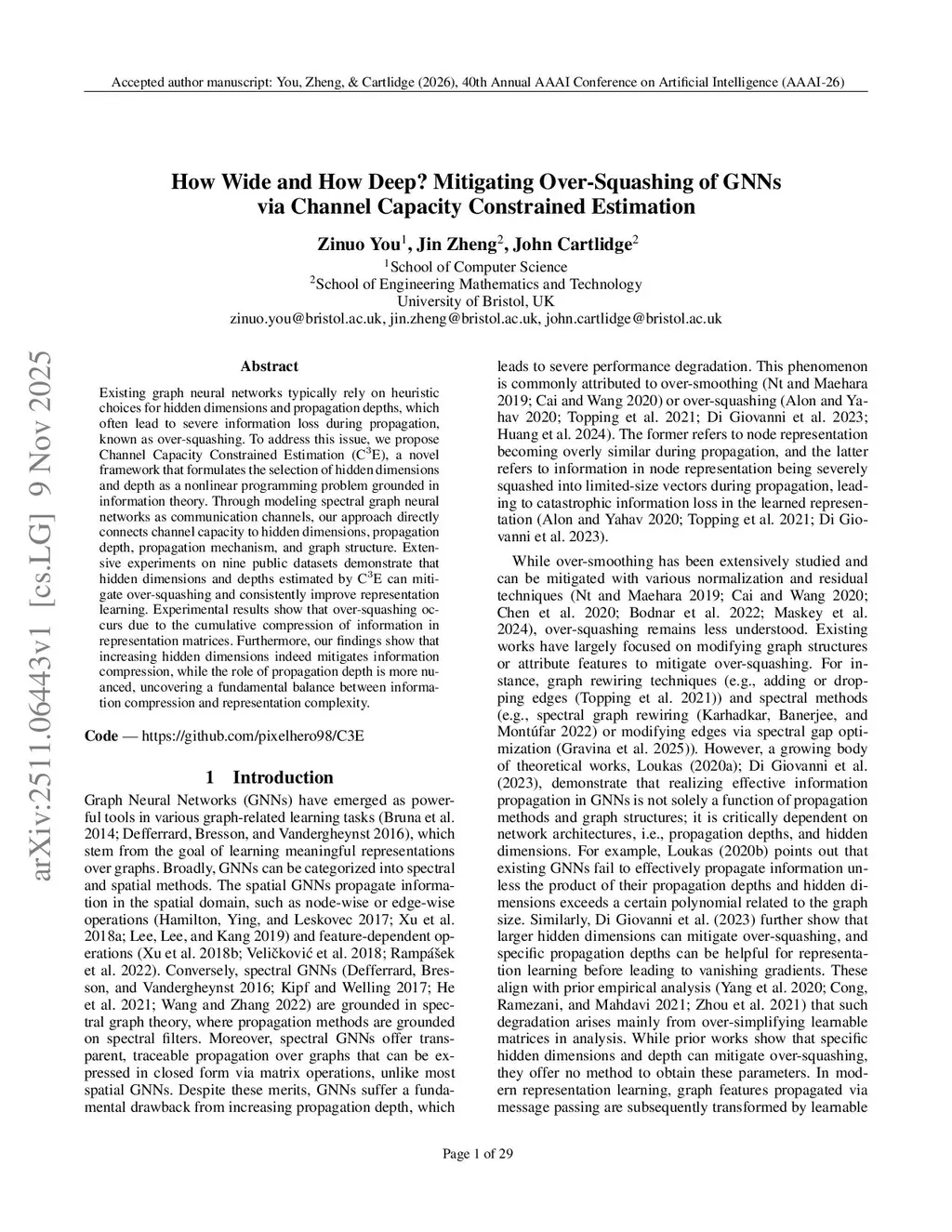 Existing graph neural networks typically rely on heuristic choices for hidden dimensions and propagation depths, which often lead to severe information loss during propagation, known as over-squashing. To address this issue, we propose Channel Capacity Constrained Estimation (C3E), a novel framework that formulates the selection of hidden dimensions and depth as a nonlinear programming problem grounded in information theory. Through modeling spectral graph neural networks as communication channels, our approach directly connects channel capacity to hidden dimensions, propagation depth, propagation mechanism, and graph structure. Extensive experiments on nine public datasets demonstrate that hidden dimensions and depths estimated by C3E can mitigate over-squashing and consistently improve representation learning. Experimental results show that over-squashing occurs due to the cumulative compression of information in representation matrices. Furthermore, our findings show that increasing hidden dimensions indeed mitigate information compression, while the role of propagation depth is more nuanced, uncovering a fundamental balance between information compression and representation complexity.