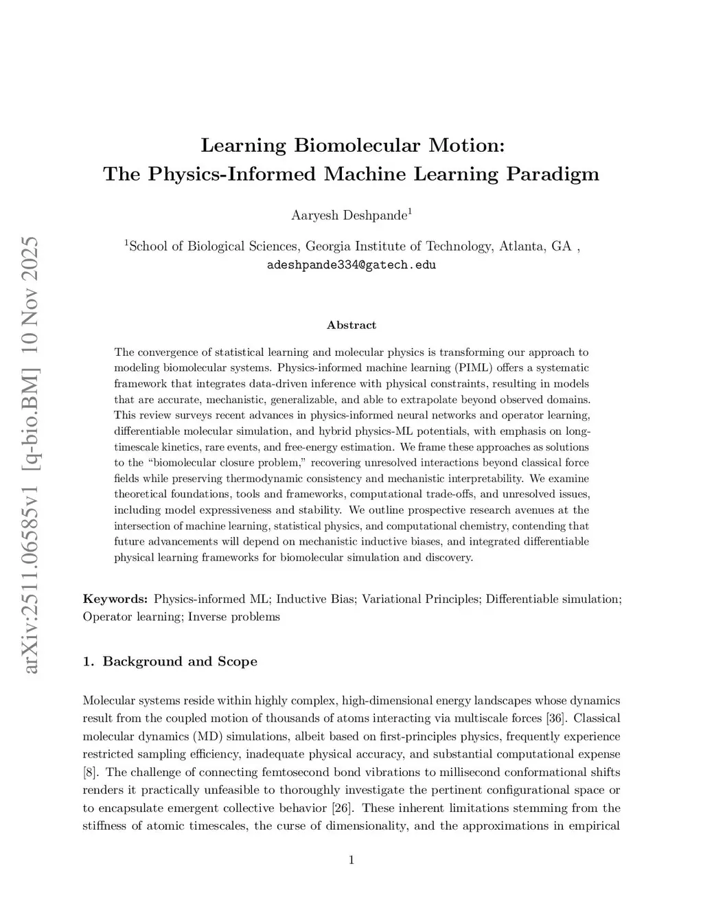 Learning Biomolecular Motion: The Physics-Informed Machine Learning Paradigm