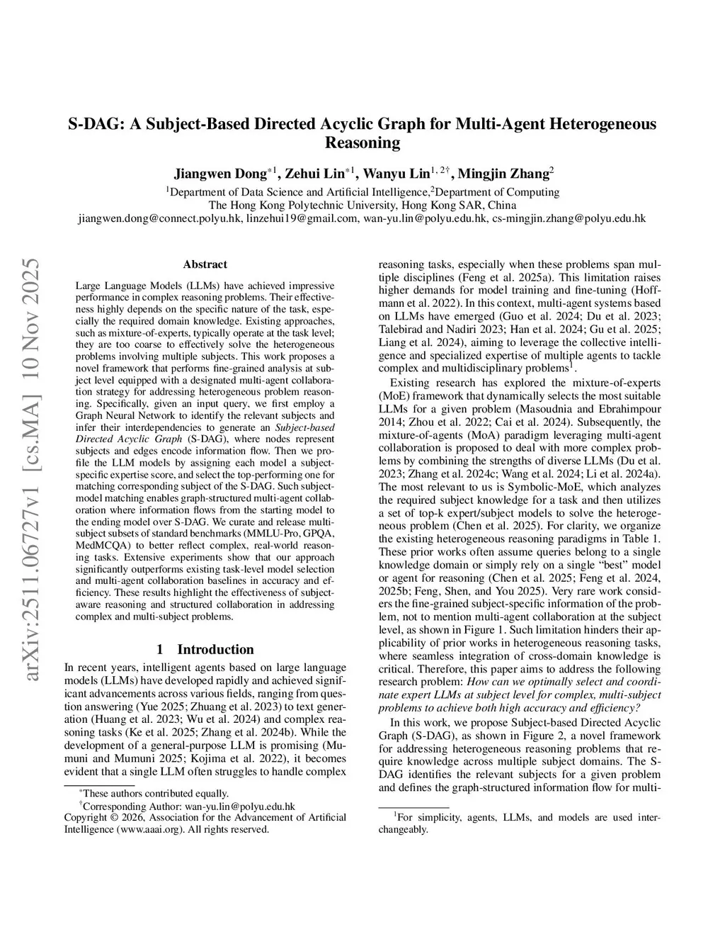S-DAG: A Subject-Based Directed Acyclic Graph for Multi-Agent Heterogeneous Reasoning