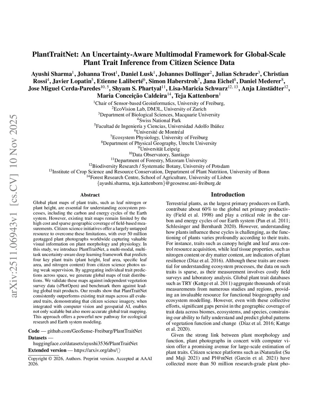 PlantTraitNet: An Uncertainty-Aware Multimodal Framework for Global-Scale Plant Trait Inference from Citizen Science Data