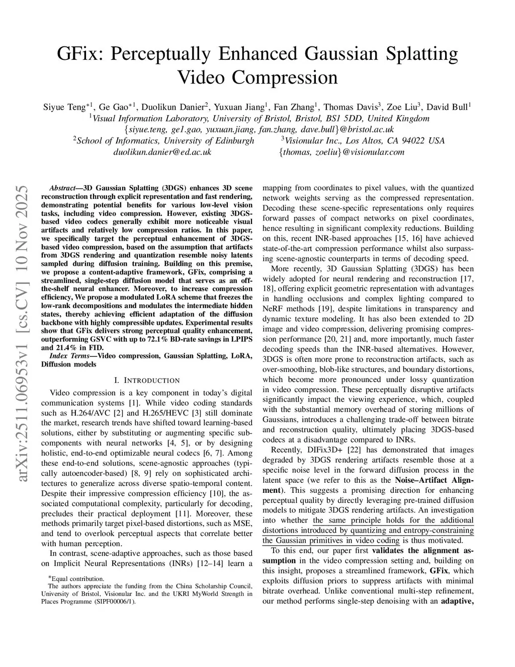 GFix: Perceptually Enhanced Gaussian Splatting Video Compression