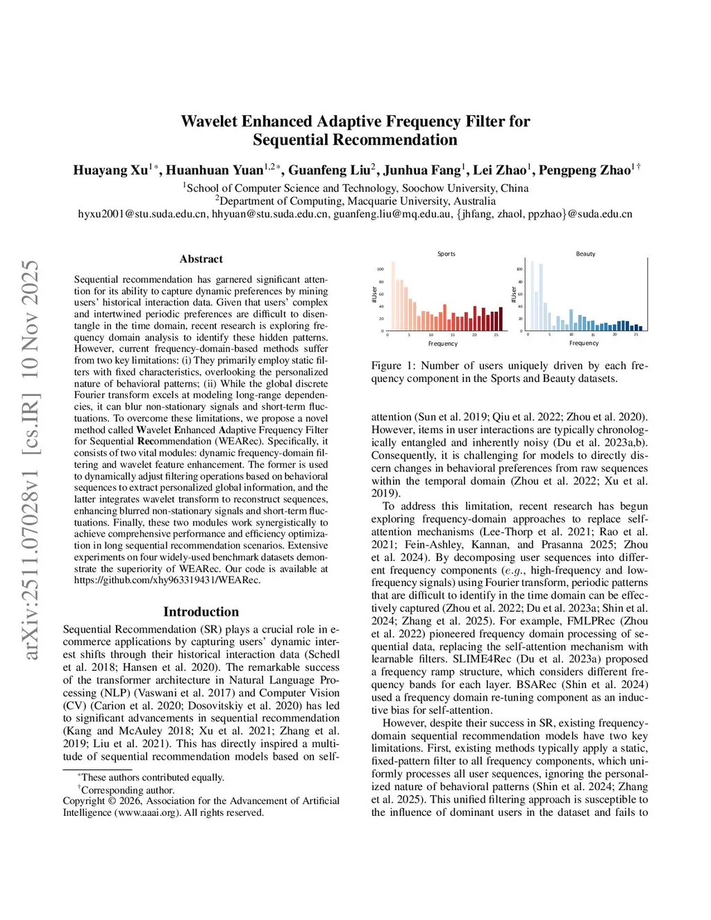 Wavelet Enhanced Adaptive Frequency Filter for Sequential Recommendation