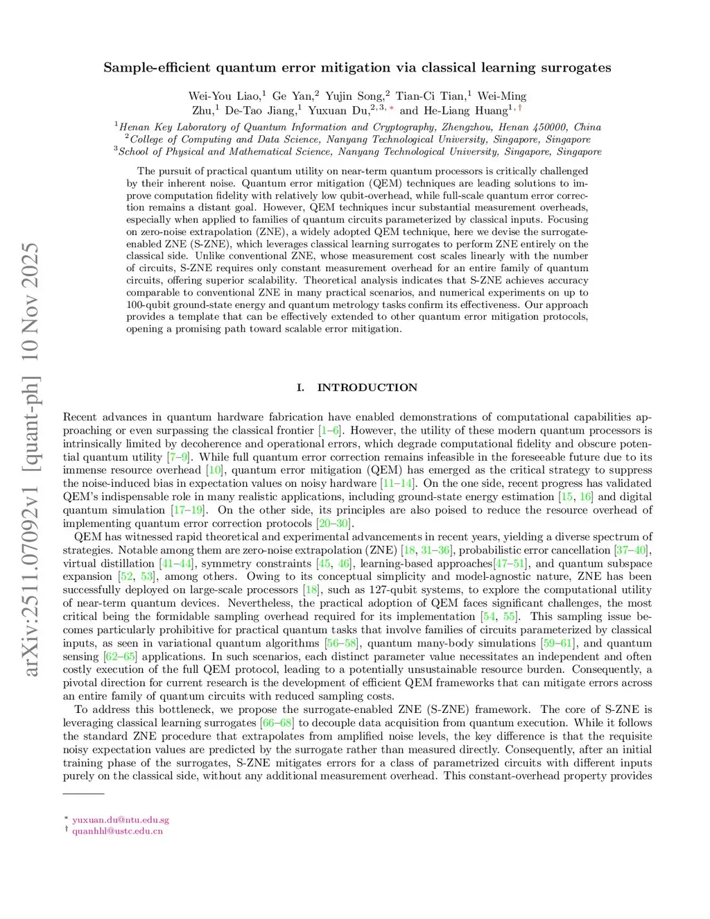 The pursuit of practical quantum utility on near-term quantum processors is critically challenged by their inherent noise. Quantum error mitigation (QEM) techniques are leading solutions to improve computation fidelity with relatively low qubit-overhead, while full-scale quantum error correction remains a distant goal. However, QEM techniques incur substantial measurement overheads, especially when applied to families of quantum circuits parameterized by classical inputs. Focusing on zero-noise extrapolation (ZNE), a widely adopted QEM technique, here we devise the surrogate-enabled ZNE (S-ZNE), which leverages classical learning surrogates to perform ZNE entirely on the classical side. Unlike conventional ZNE, whose measurement cost scales linearly with the number of circuits, S-ZNE requires only constant measurement overhead for an entire family of quantum circuits, offering superior scalability. Theoretical analysis indicates that S-ZNE achieves accuracy comparable to conventional ZNE in many practical scenarios, and numerical experiments on up to 100-qubit ground-state energy and quantum metrology tasks confirm its effectiveness. Our approach provides a template that can be effectively extended to other quantum error mitigation protocols, opening a promising path toward scalable error mitigation.