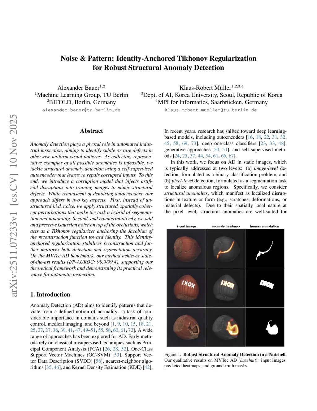 Noise & pattern: identity-anchored Tikhonov regularization for robust structural anomaly detection