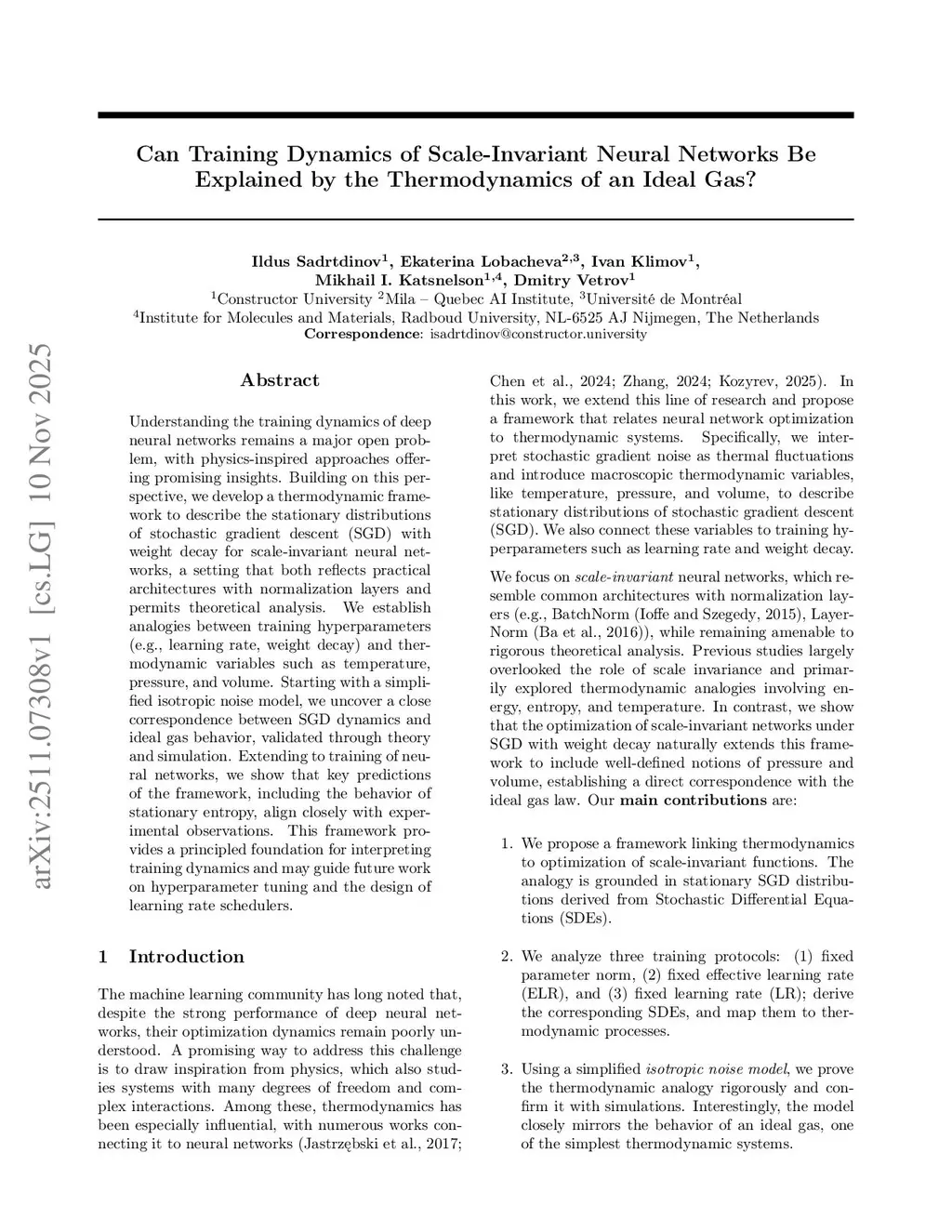 Can Training Dynamics of Scale-Invariant Neural Networks Be Explained by the Thermodynamics of an Ideal Gas?