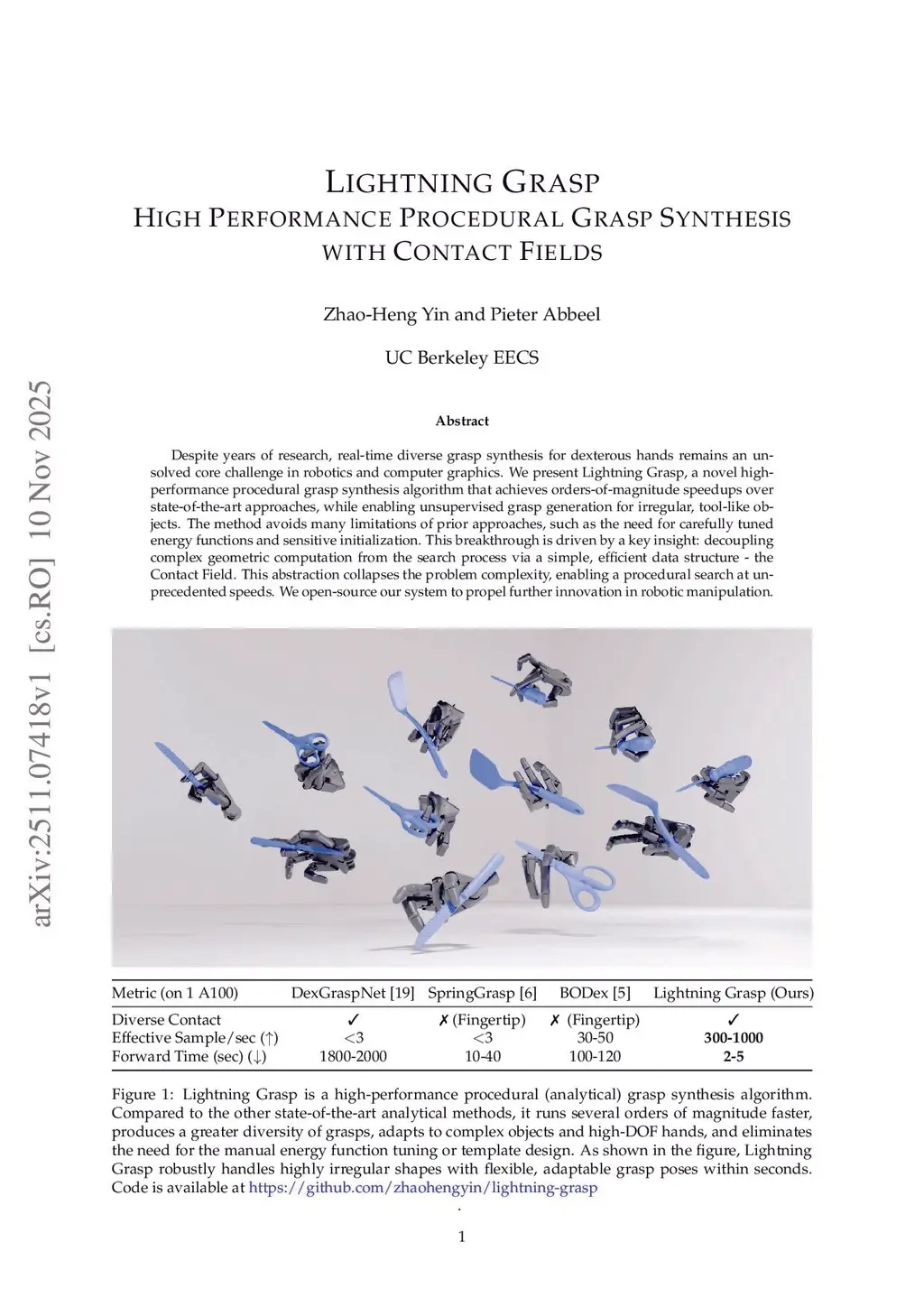 Lightning Grasp: High Performance Procedural Grasp Synthesis with Contact Fields