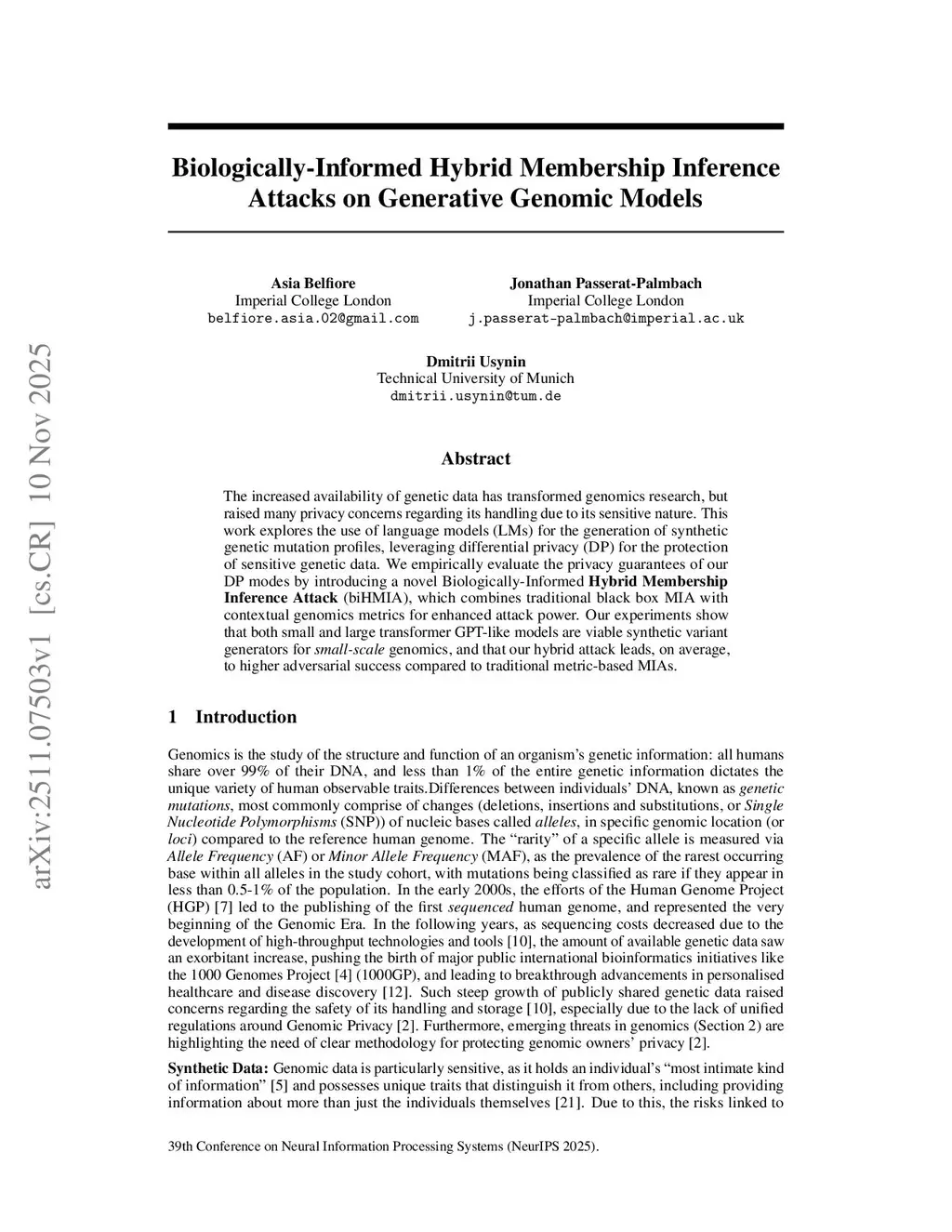 Biologically-Informed Hybrid Membership Inference Attacks on Generative Genomic Models