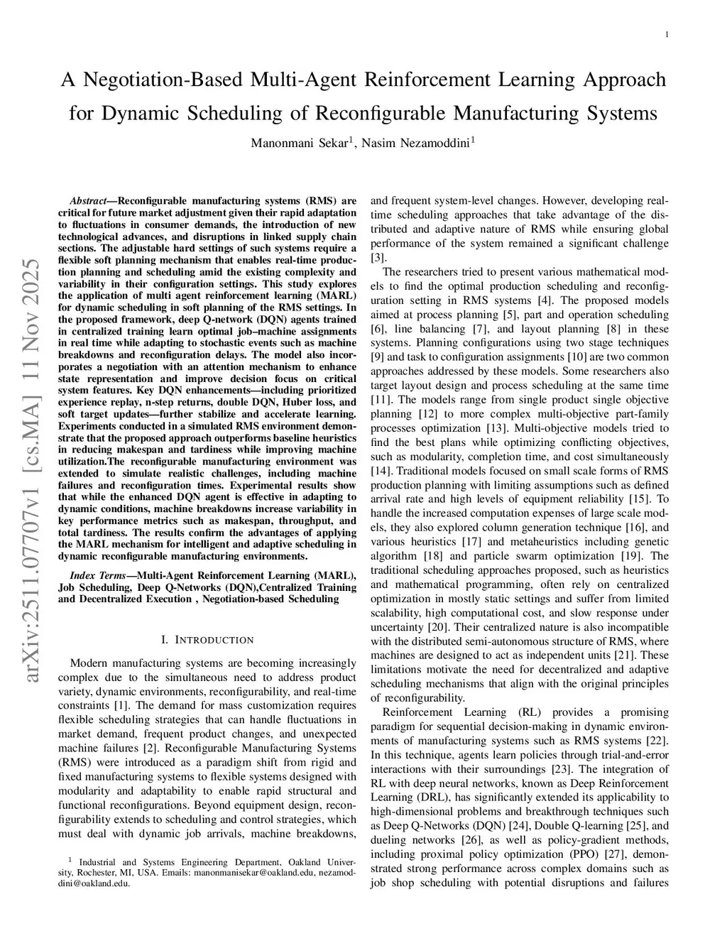 A Negotiation-Based Multi-Agent Reinforcement Learning Approach for Dynamic Scheduling of Reconfigurable Manufacturing Systems