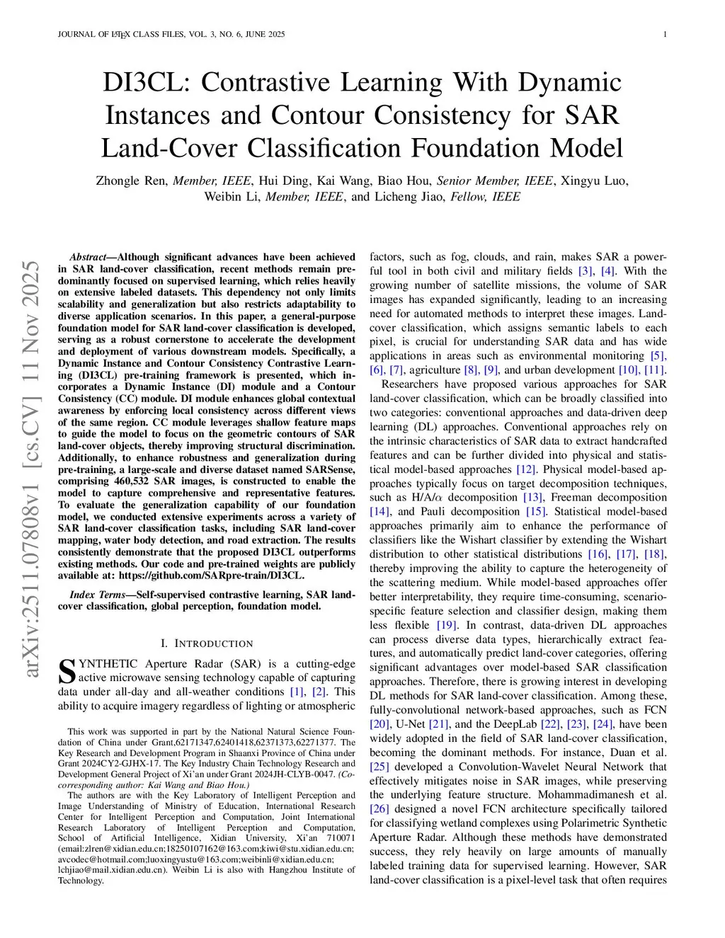 DI3CL: Contrastive Learning With Dynamic Instances and Contour Consistency for SAR Land-Cover Classification Foundation Model