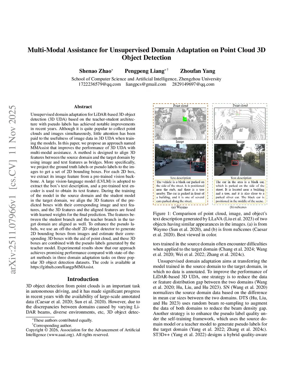 Multi-Modal Assistance for Unsupervised Domain Adaptation on Point Cloud 3D Object Detection