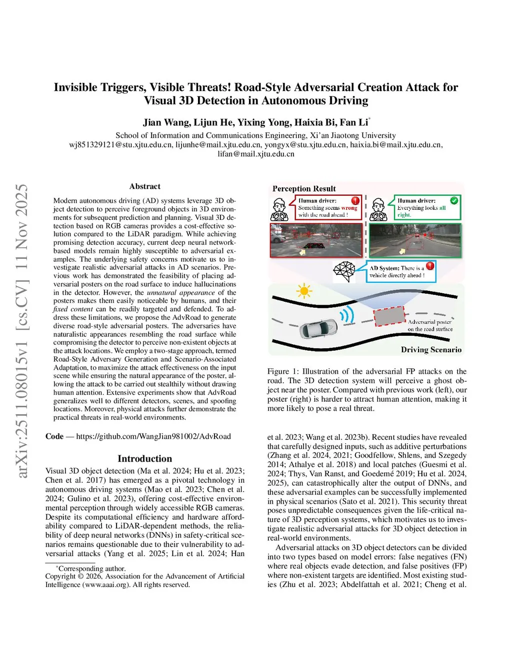 Invisible Triggers, Visible Threats! Road-Style Adversarial Creation Attack for Visual 3D Detection in Autonomous Driving