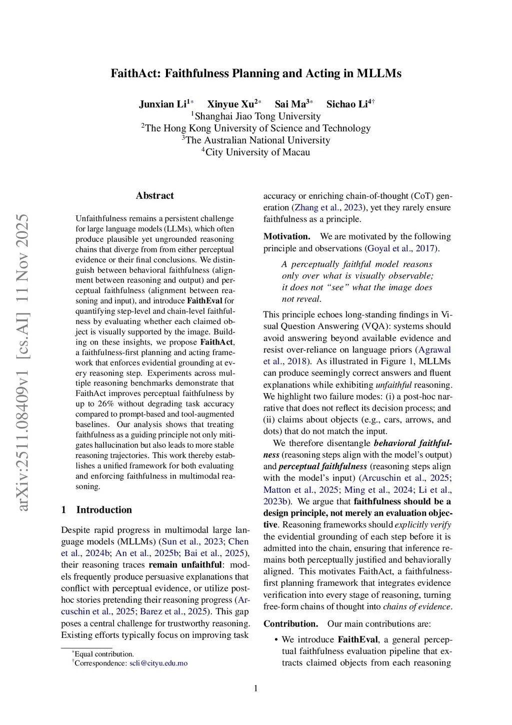 Faithful-First Reasoning, Planning, and Acting for Multimodal LLMs
