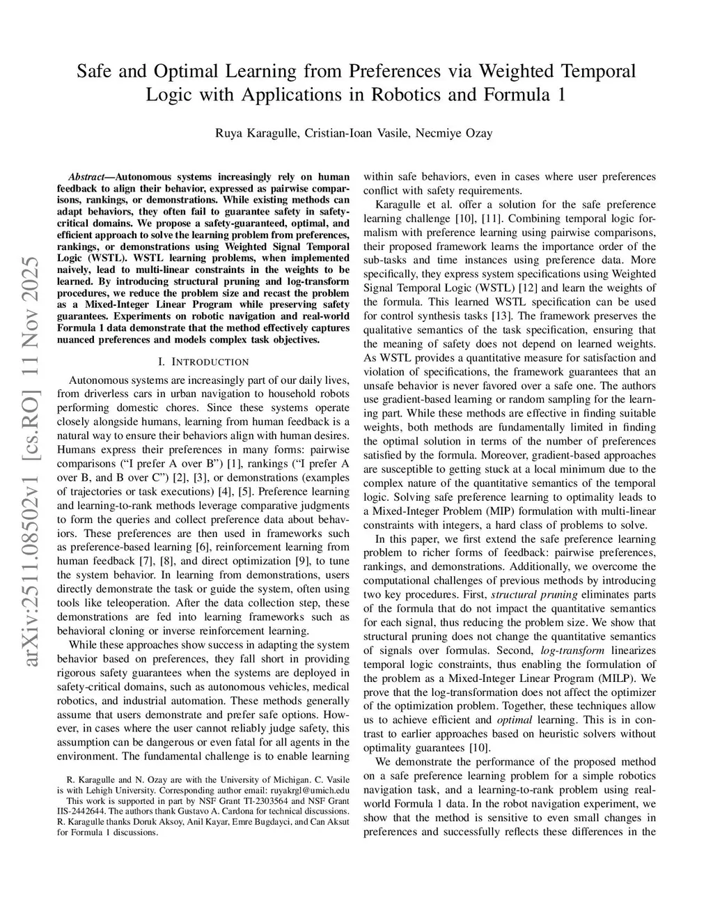 Safe and Optimal Learning from Preferences via Weighted Temporal Logic with Applications in Robotics and Formula 1