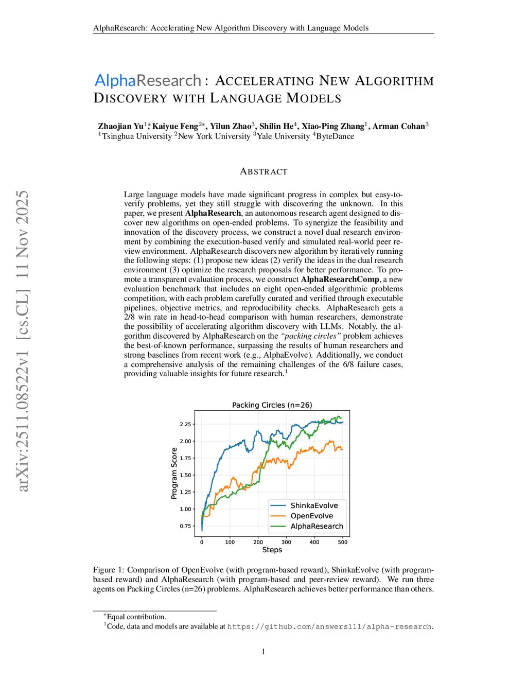 AlphaResearch: Accelerating New Algorithm Discovery with Language Models