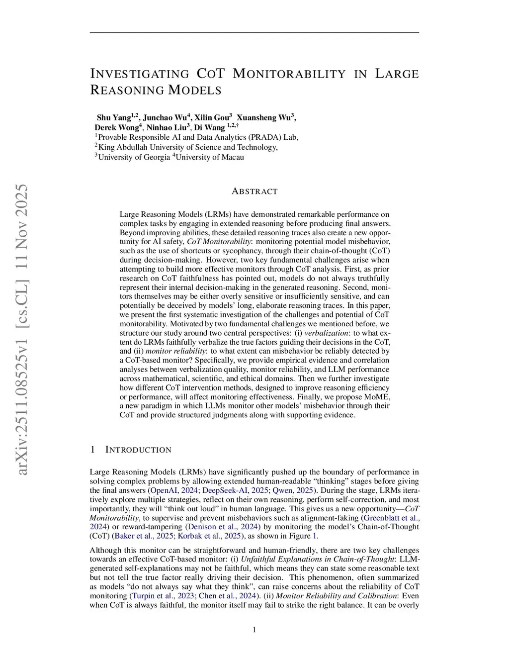 Large Reasoning Models (LRMs) have demonstrated remarkable performance on complex tasks by engaging in extended reasoning before producing final answers. Beyond improving abilities, these detailed reasoning traces also create a new opportunity for AI safety, CoT Monitorability: monitoring potential model misbehavior, such as the use of shortcuts or sycophancy, through their chain-of-thought (CoT) during decision-making. However, two key fundamental challenges arise when attempting to build more effective monitors through CoT analysis. First, as prior research on CoT faithfulness has pointed out, models do not always truthfully represent their internal decision-making in the generated reasoning. Second, monitors themselves may be either overly sensitive or insufficiently sensitive, and can potentially be deceived by models' long, elaborate reasoning traces. In this paper, we present the first systematic investigation of the challenges and potential of CoT monitorability. Motivated by two fundamental challenges we mentioned before, we structure our study around two central perspectives: (i) verbalization: to what extent do LRMs faithfully verbalize the true factors guiding their decisions in the CoT, and (ii) monitor reliability: to what extent can misbehavior be reliably detected by a CoT-based monitor? Specifically, we provide empirical evidence and correlation analyses between verbalization quality, monitor reliability, and LLM performance across mathematical, scientific, and ethical domains. Then we further investigate how different CoT intervention methods, designed to improve reasoning efficiency or performance, will affect monitoring effectiveness. Finally, we propose MoME, a new paradigm in which LLMs monitor other models' misbehavior through their CoT and provide structured judgments along with supporting evidence.
