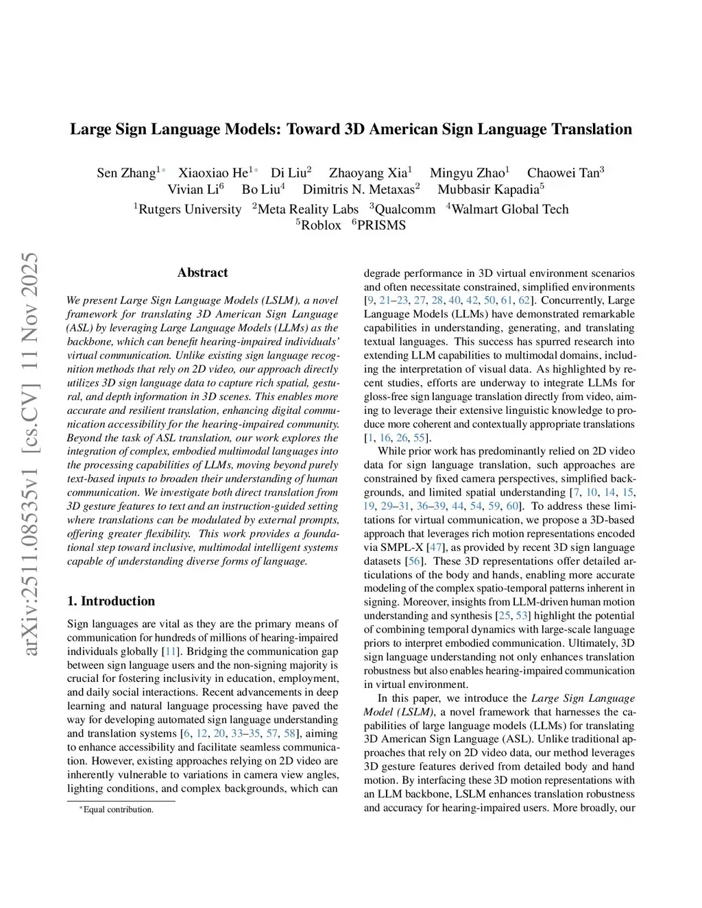 We present Large Sign Language Models (LSLM), a novel framework for translating 3D American Sign Language (ASL) by leveraging Large Language Models (LLMs) as the backbone, which can benefit hearing-impaired individuals' virtual communication. Unlike existing sign language recognition methods that rely on 2D video, our approach directly utilizes 3D sign language data to capture rich spatial, gestural, and depth information in 3D scenes. This enables more accurate and resilient translation, enhancing digital communication accessibility for the hearing-impaired community. Beyond the task of ASL translation, our work explores the integration of complex, embodied multimodal languages into the processing capabilities of LLMs, moving beyond purely text-based inputs to broaden their understanding of human communication. We investigate both direct translation from 3D gesture features to text and an instruction-guided setting where translations can be modulated by external prompts, offering greater flexibility. This work provides a foundational step toward inclusive, multimodal intelligent systems capable of understanding diverse forms of language.