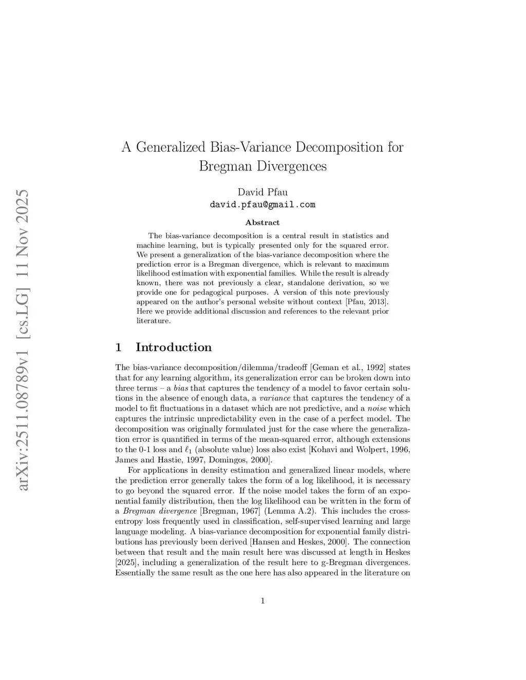 A Generalized Bias-Variance Decomposition for Bregman Divergences