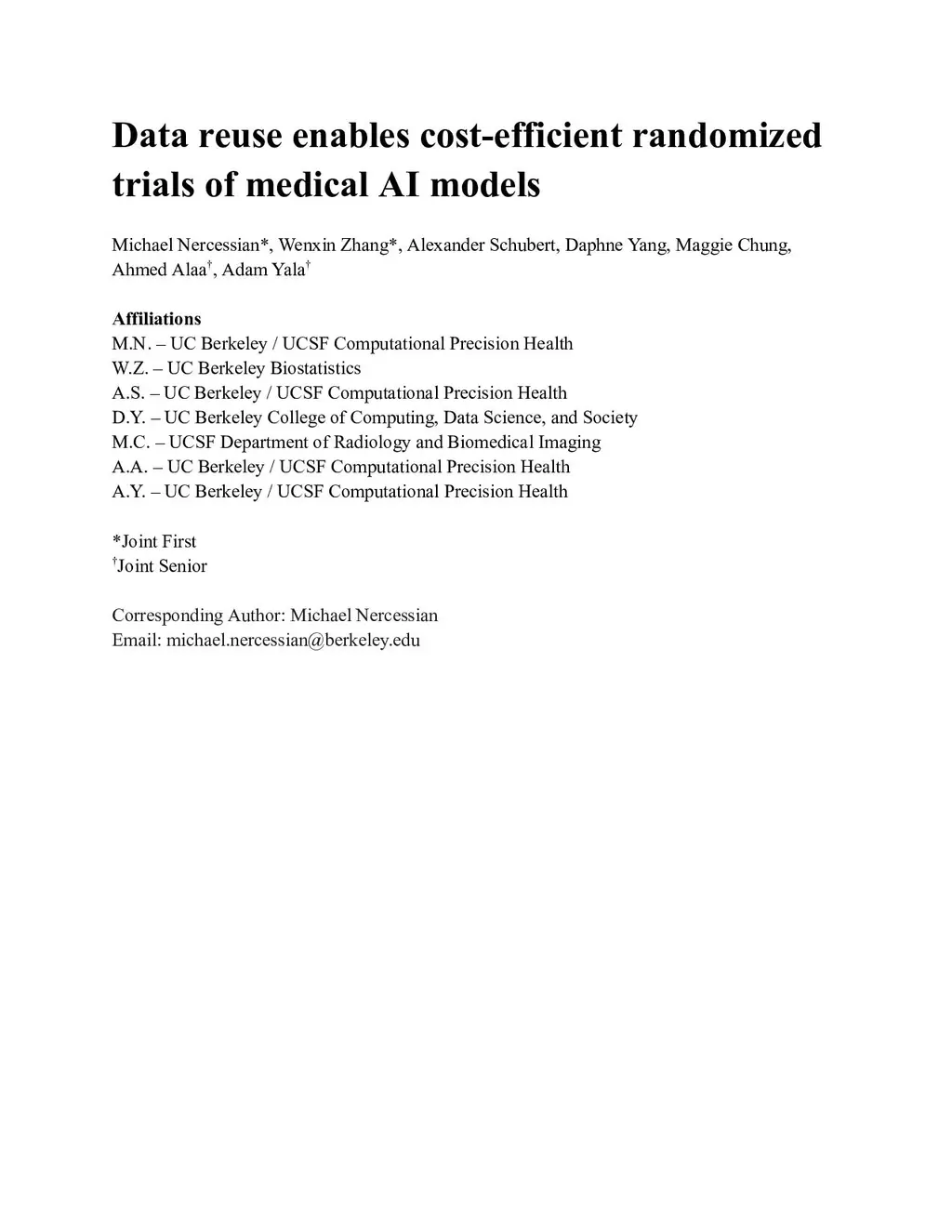 Data reuse enables cost-efficient randomized trials of medical AI models