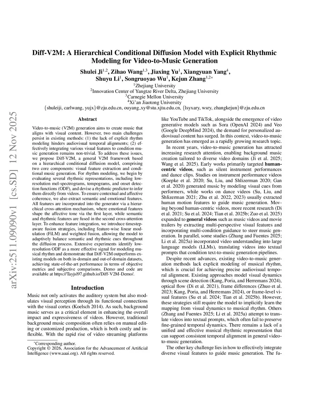 Diff-V2M: A Hierarchical Conditional Diffusion Model with Explicit Rhythmic Modeling for Video-to-Music Generation