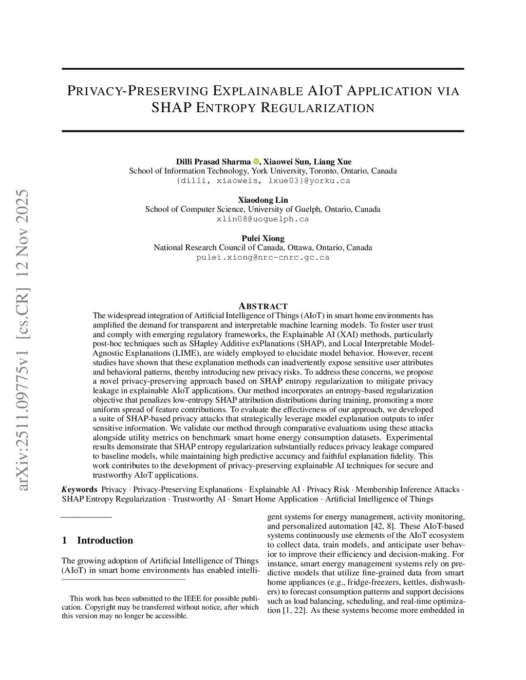Privacy-Preserving Explainable AIoT Application via SHAP Entropy Regularization