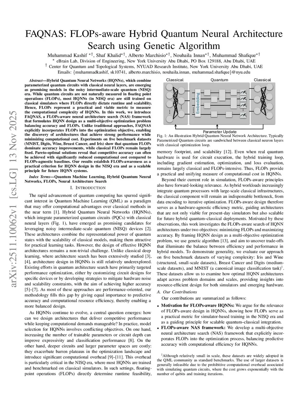 FAQNAS: FLOPs-aware Hybrid Quantum Neural Architecture Search using Genetic Algorithm