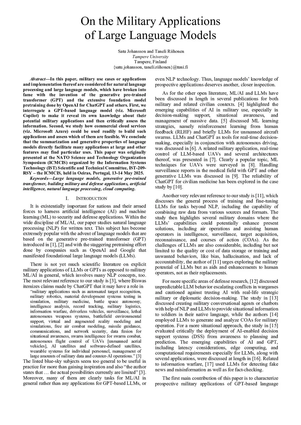 On the Military Applications of Large Language Models